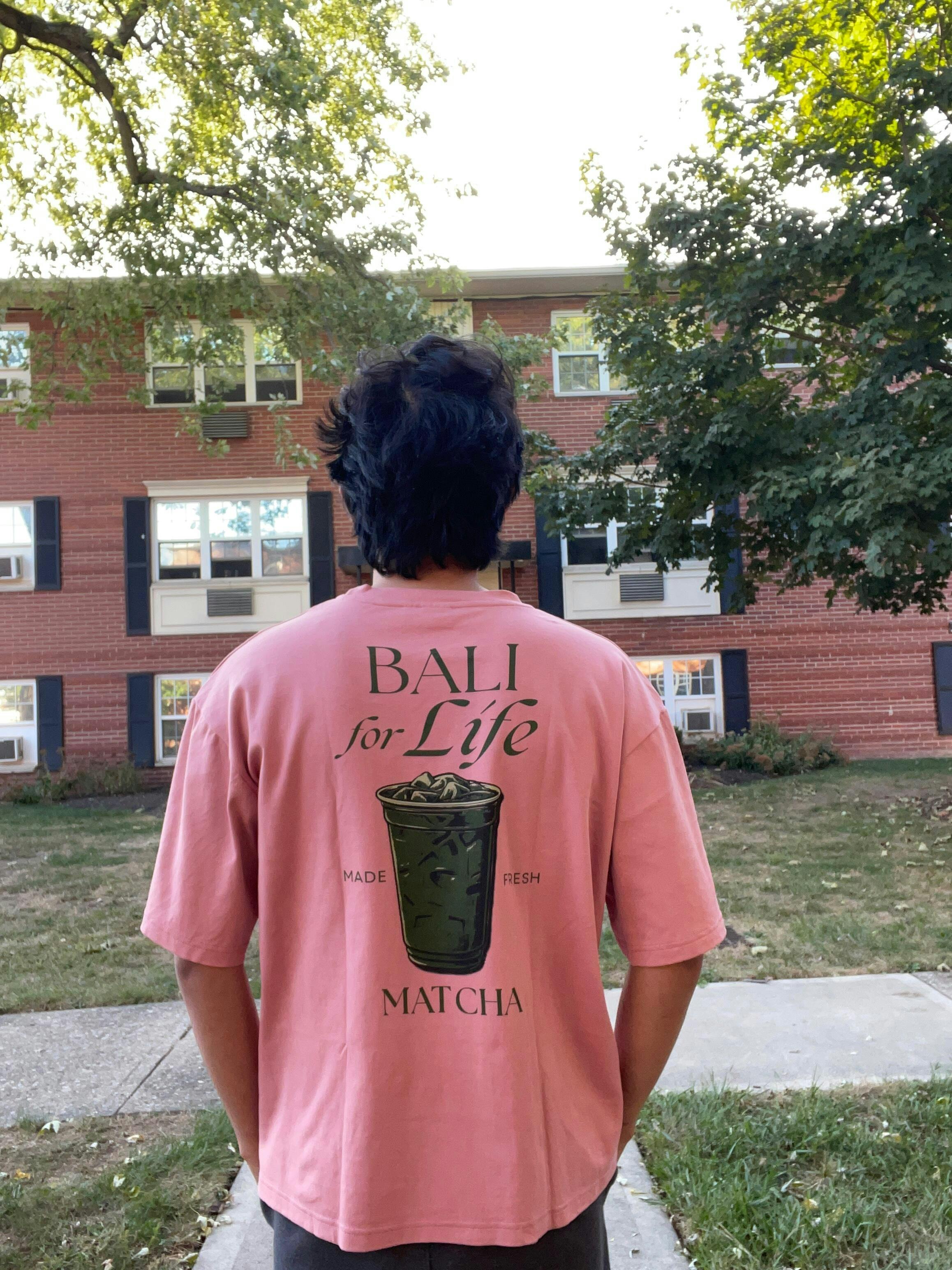 - Back detail : Iced matcha illustration with “BALI for Life” typography